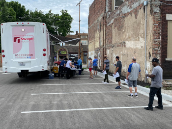 Swope Health acquires a state of the art custom-built 39 foot Mobile Medical Clinic equipped with two exam rooms, laboratory, restroom, and wheel chair lift.