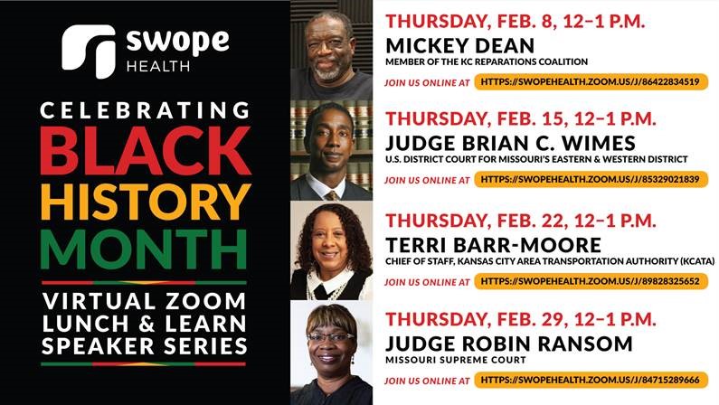 Swope Health invites you to join our Black History speaker series, a lunchtime virtual meeting, featuring civic and community leaders. Each of the four weekly events is